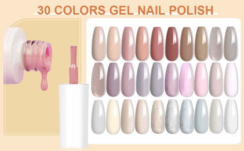 [US ONLY]33PCS Gel Nail Polish Set – 30 colors gel nail polish, 1pc foundation gel, 1pc matte top coat, 1pc glossy top coat