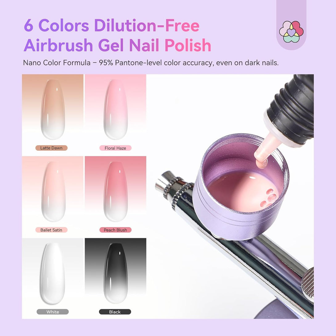 [US ONLY] 7-in-1 Pro Airbrush Nail Art Set + 6PCS Gel Polish