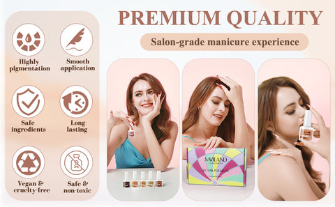 3. Saviland gel nail polish is made from natural resin and healthy ingredients, vegan & cruelty-free, low odor, safe and non-toxicity, no harm to nails.
