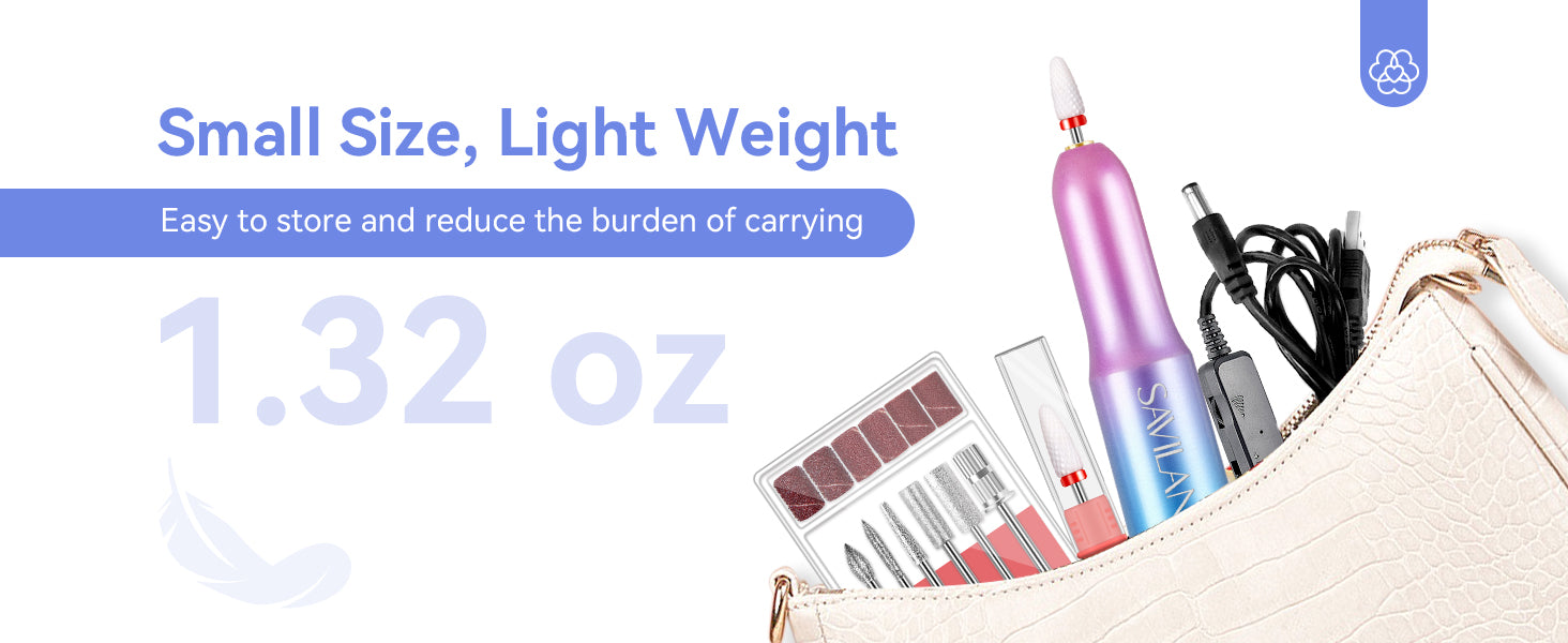 - 📍【Compact Size and Portability】The small size and lightweight design make Saviland electric nail drill easy to carry and store, making it perfect for users who want a portable and convenient nail care solution.