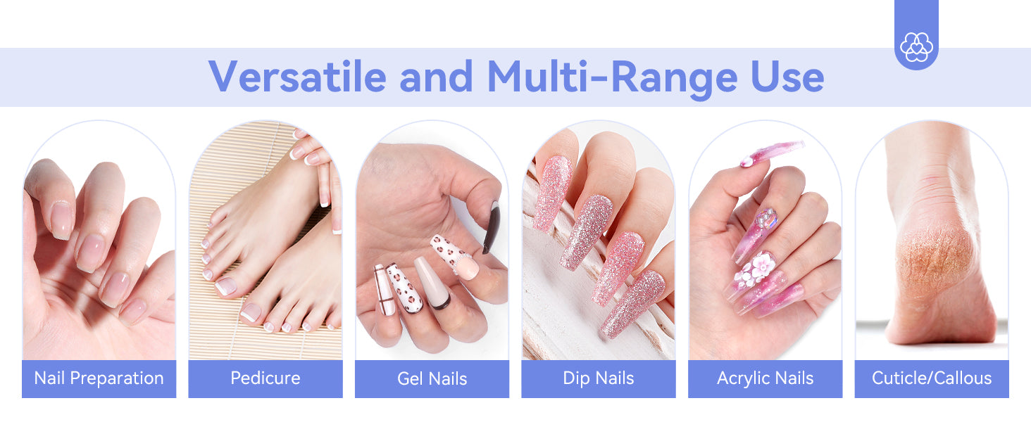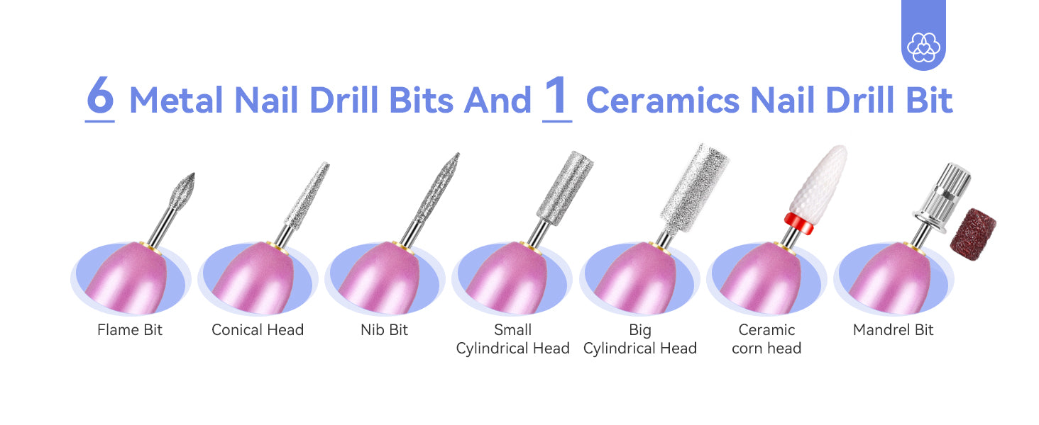 - 📍【Multiple Nail Drill Bits for Multifunction】Saviland electric nail drill comes with seven different types of nail drill bits, including ceramic and metal nail drill for acrylic nails, giving users a range of options for shaping, filing, polishing, and buffing their nails. The multiple drill bits allow for a variety of creative possibilities and can be easily interchanged to suit individual needs.