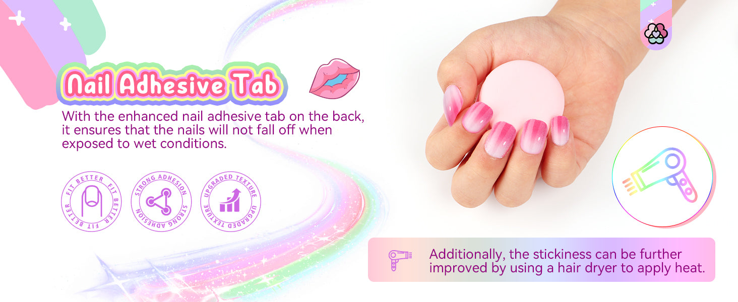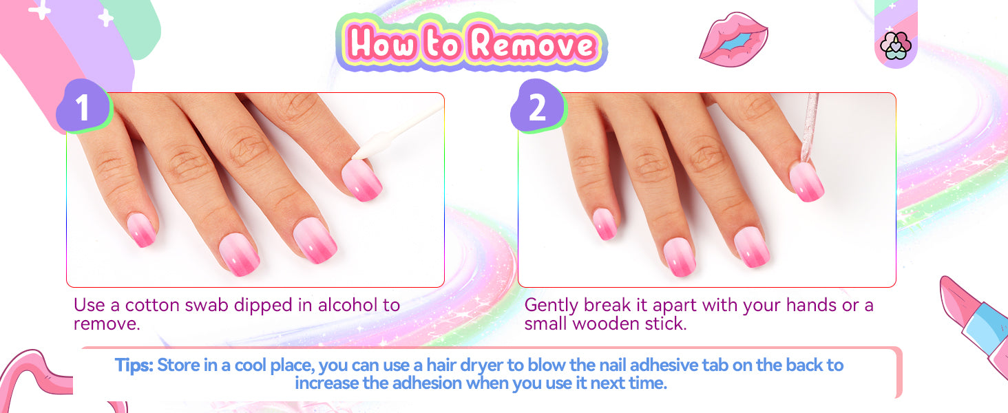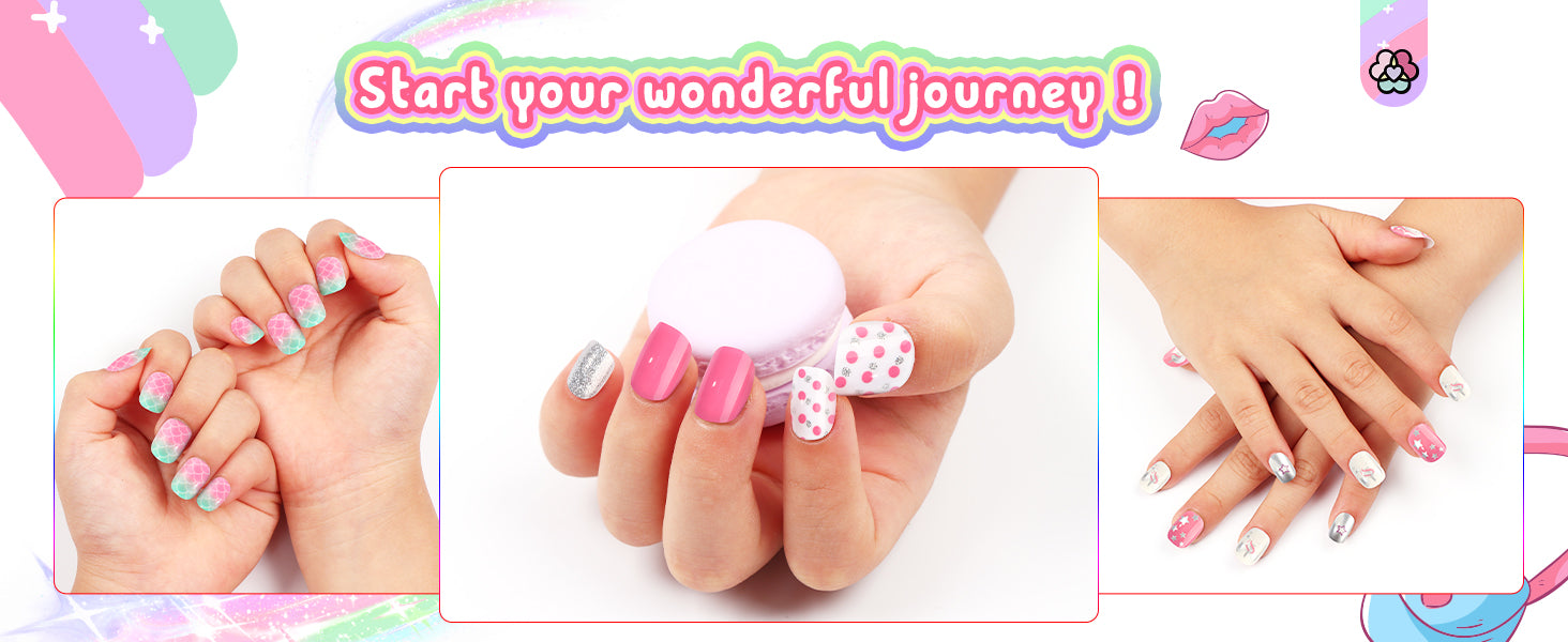 - 【Ideal Gift & Good Service】SAVILAND fake nails for girls is packaged beautifully, making it an ideal gift for your girls. If it is not firm, you can use a hair dryer to blow the pre-glued sticker on the back to increase the adhesion. If you have any questions about our kids stick on nails, you can contact our customer service team at any time, and we will try our best to solve it for you.