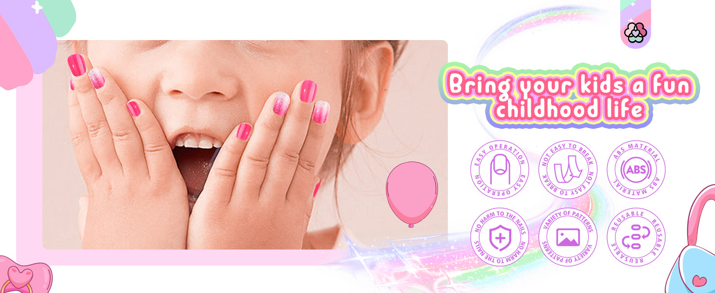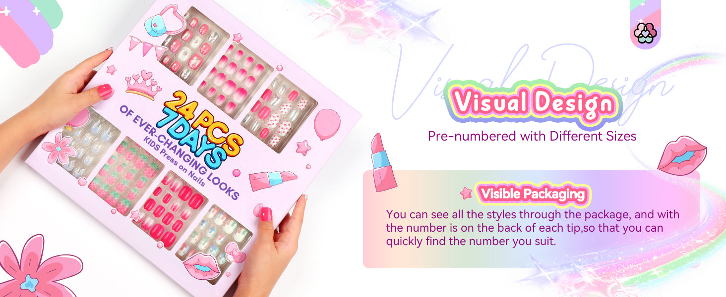 - 【Healthy & Safe】 SAVILAND fake nails for kids crafted from premium ABS material are reusable and breathable, free from pollution and odor. They won't cause any damage or weaken your child's natural nails, allowing them to grow healthily while still enjoying the beauty of vibrant and colorful designs.