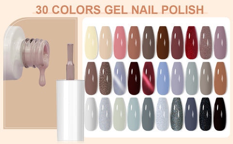 [US ONLY]33PCS Gel Nail Polish Set – 30 colors gel nail polish, 1pc foundation gel, 1pc matte top coat, 1pc glossy top coat