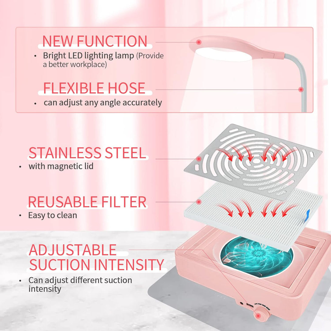 - ♦️ Warm Tips & Best Service – Do not allow water or other types of liquids to enter the machine, as it may cause malfunction. If you have any questions about our electric nail dust collector with lamp, please feel free to contact our customer service team, and we will try our best to solve them for you. Happy shopping~