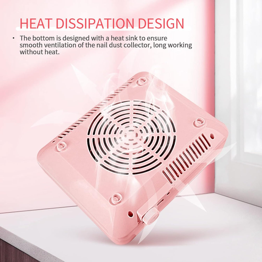 - ♦️ Heat dissipation & Easy to Operate - Saviland nail dust vacuum cleaner has powerful and efficient power to keep you away from nail dust. The bottom of the dust collector is designed with a heat sink to ensure smooth ventilation of the vacuum cleaner. This electric nail dust collector for acrylic nails has a soft LED light does not hurt the eyes, can shine clearly where the dust is, giving a dust-free and clean manicure workplace, easy to use, beginner-friendly, and saving your time.